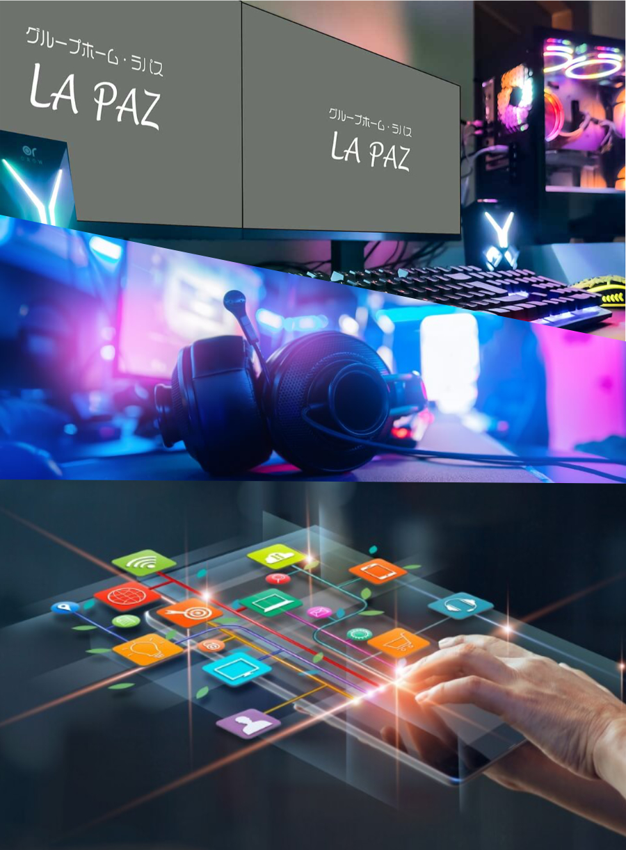 グループホーム・ラパスが他のグループホームと何が違うのか?一番の特徴が「楽しんでITと共に過ごす」という生活スタイルに重きを置いている点です。ラパスでは特に「現在産業の中心となってきているエンターテイメント分野」との適切かつ最適な付き合い方をご提案します。
